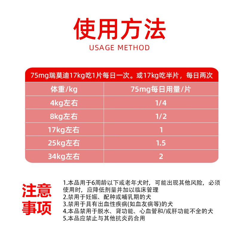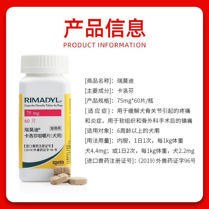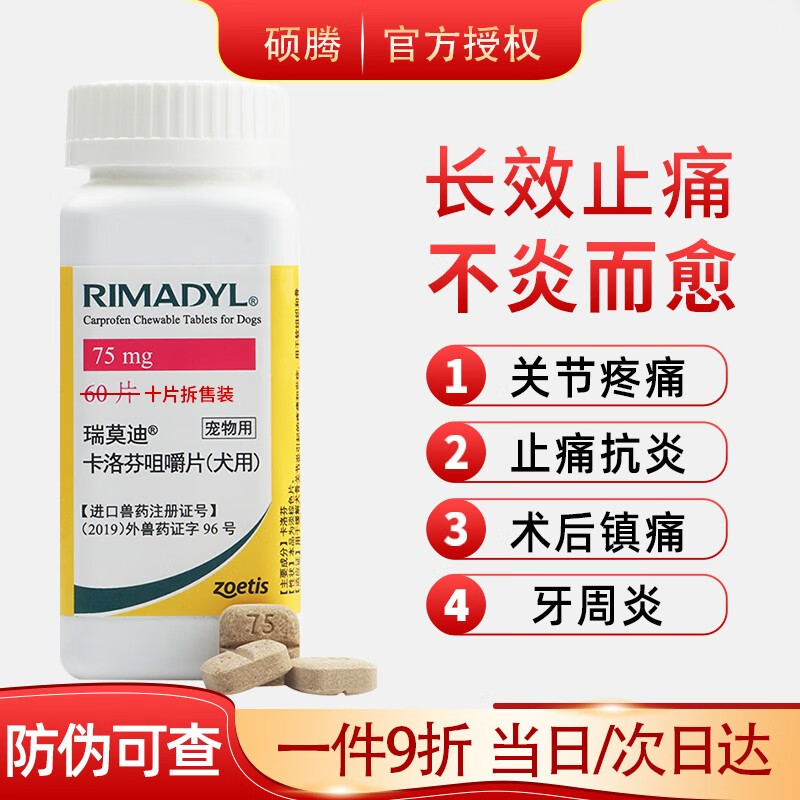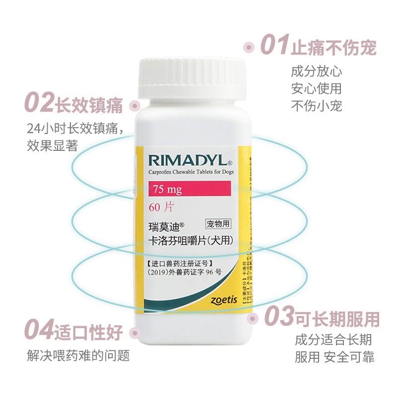 瑞莫迪卡洛芬咀嚼片宠物止疼药片宠物狗狗骨折药术后外伤关节髌骨脱位消炎止痛药片 75mg 10片拆售