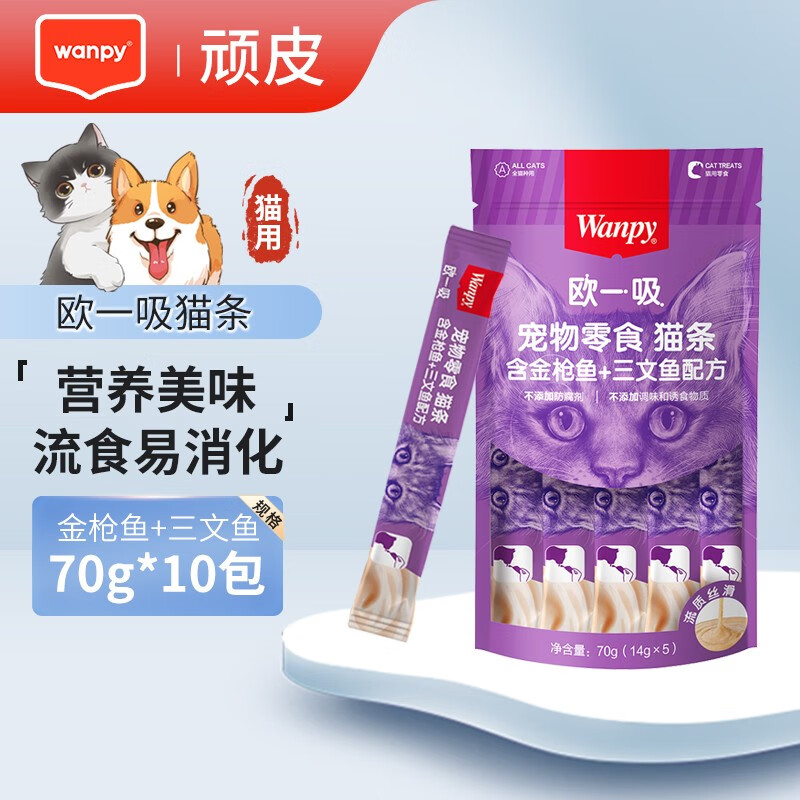 Wanpy顽皮欧一吸猫条宠物零食拌粮养增肥猫咪补水湿粮软包无诱食剂罐头 金枪鱼 三文鱼*50支