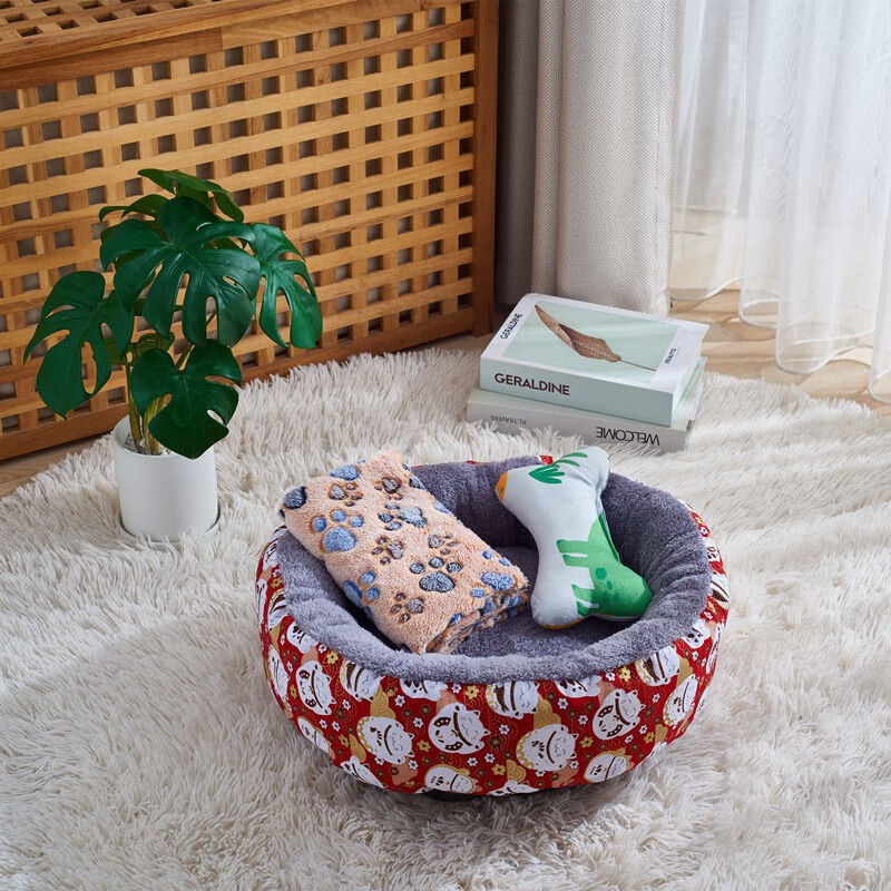 火岩熊猫窝四季可用狗窝冬季猫咪小型大犬猫窝四季猫狗垫子宠物用品床 蛋挞窝灰色单窝 直径30cm(2斤内小宠)