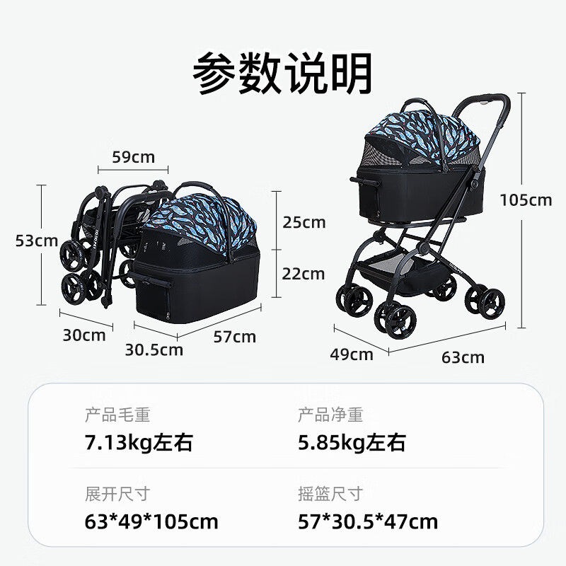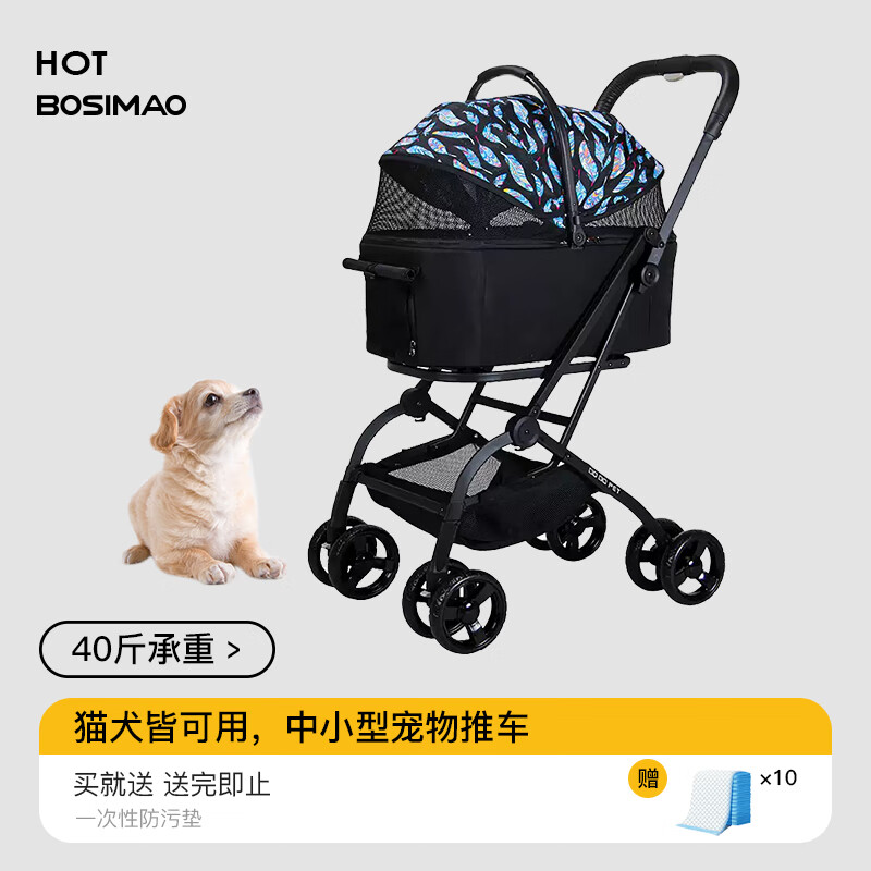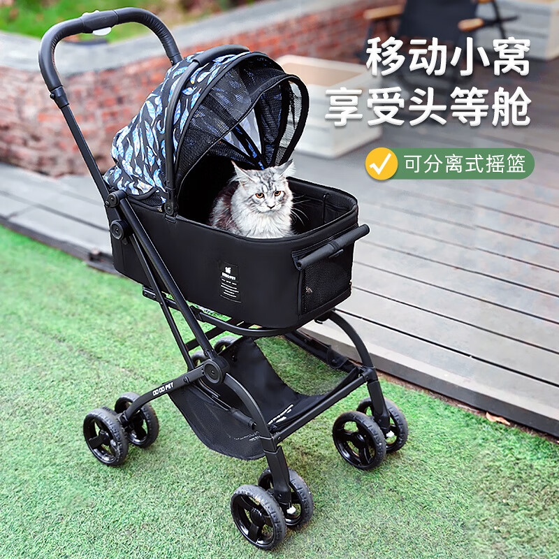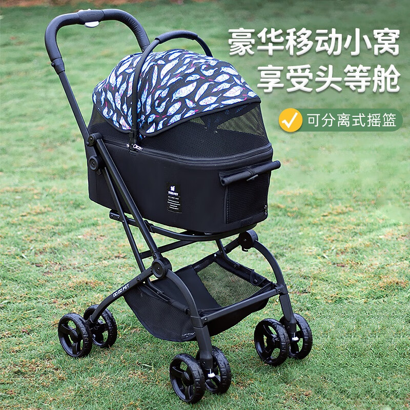 BOSIMAO中小型犬狗狗推车分离式便携外出宠物溜猫车猫咪婴儿车轻便可折叠 蓝羽黑