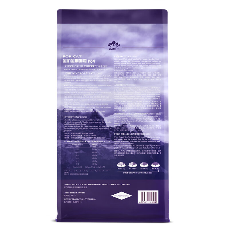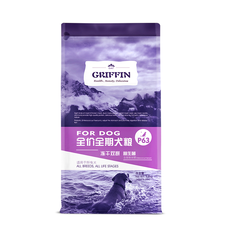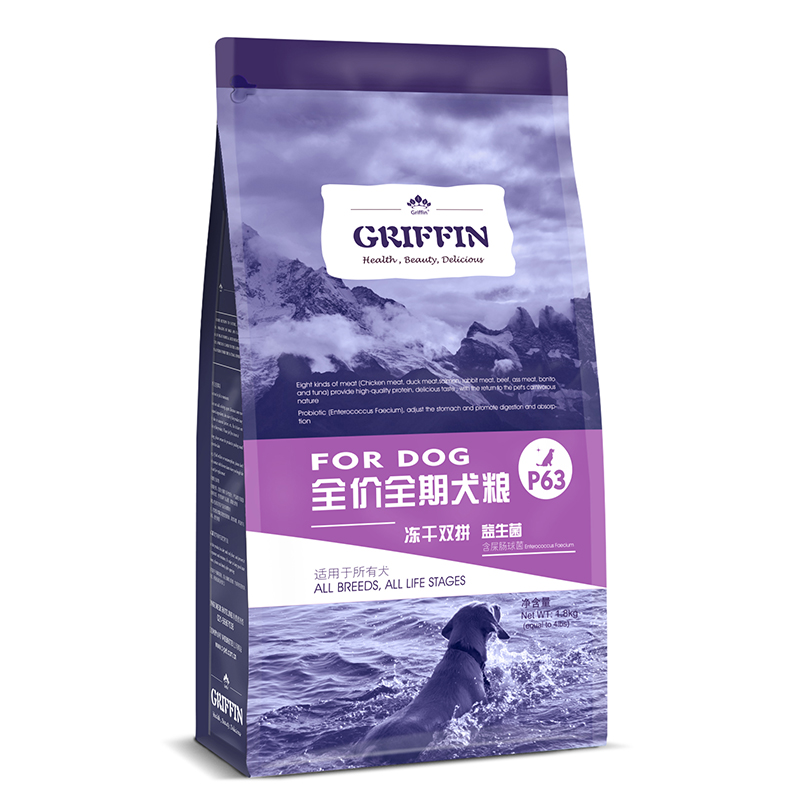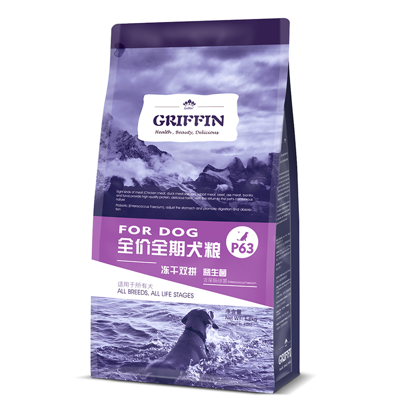 贵芬(GRIFFIN)冻干双拼狗粮1.8kg 狗粮成犬幼犬通用P63多肉高蛋白益生菌配方4磅