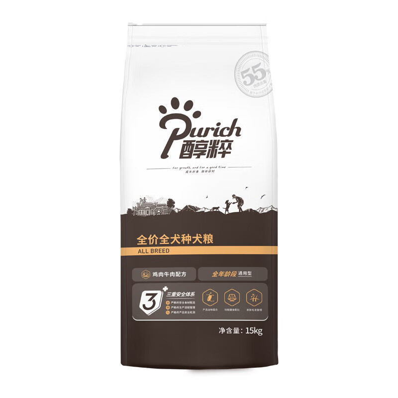 醇粹(Purich)成幼犬通用型狗粮纯粹柯基金毛标15kg 55%肉含量-通用型 15kg