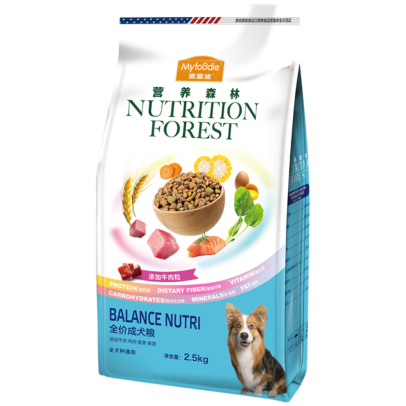 麦富迪(Myfoodie)营养森林狗粮 小型犬泰迪柯基柴犬金毛边牧比熊拉布拉多博美法斗 通用成犬2.5kg