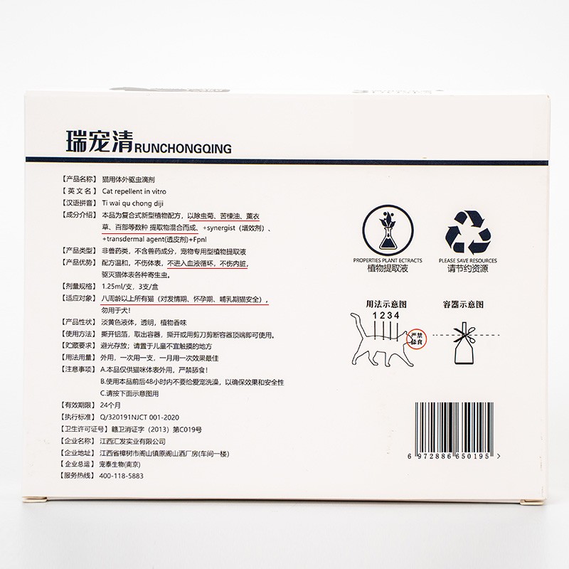 瑞宠清 宠物驱虫药狗滴剂猫咪驱虫药猫狗狗驱虫体外驱虫除耳螨跳蚤虱子螨虫宠物除虫药 单支拆售|猫 无包装【备注体重】韵达