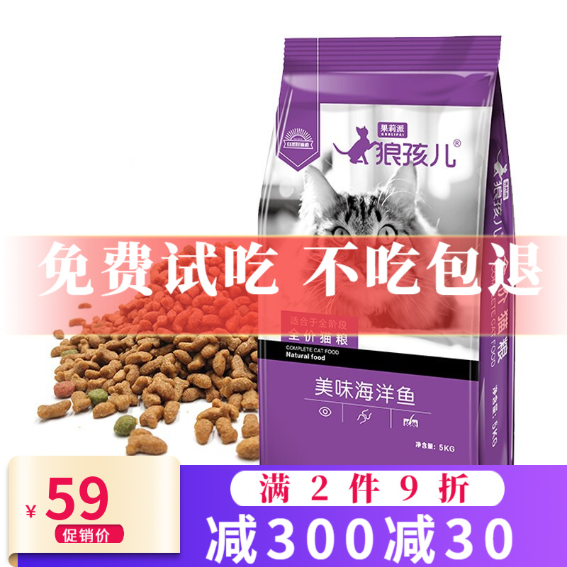 狼孩儿猫粮幼猫粮成猫粮英短美短加菲猫波斯折耳室内猫流浪猫粮三文鱼深海鱼 10kg(美味海洋鱼20斤装)