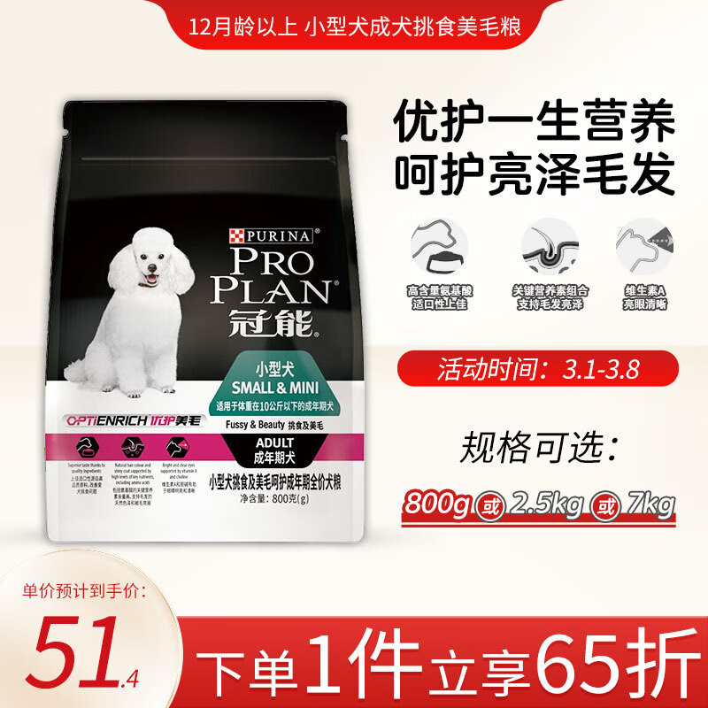 冠能(PRO PLAN)狗粮 小型犬幼犬狗粮奶糕 富含牛初乳柯基博美泰迪通用 小型美毛800g-有效期-5.17