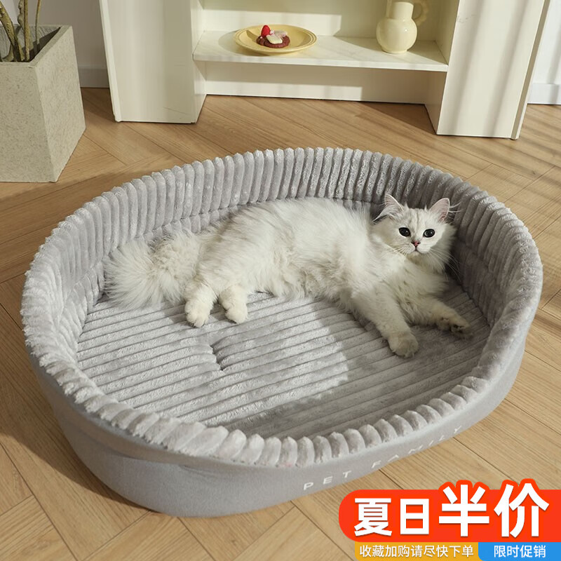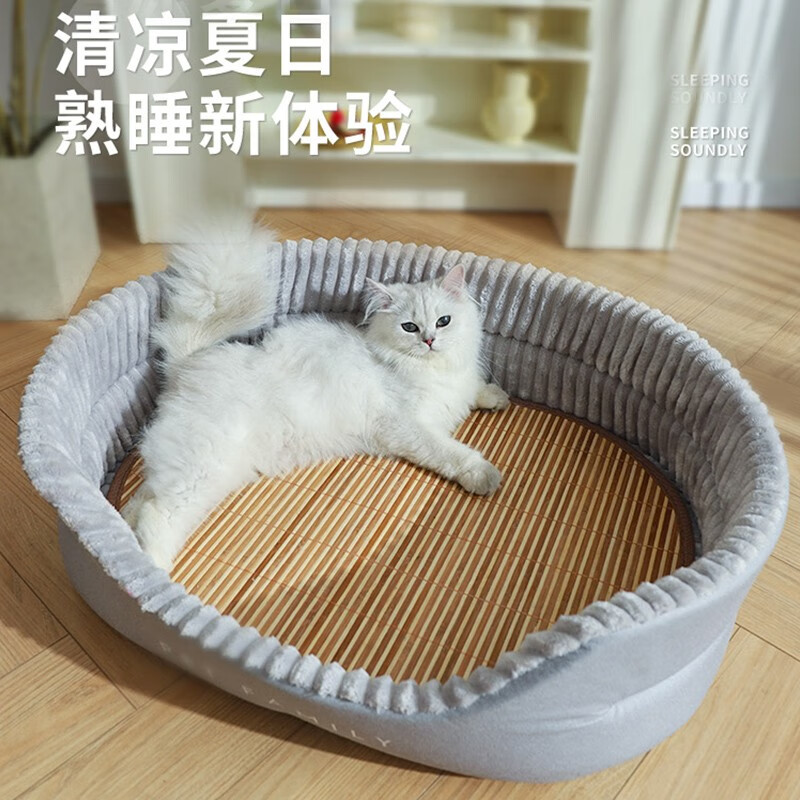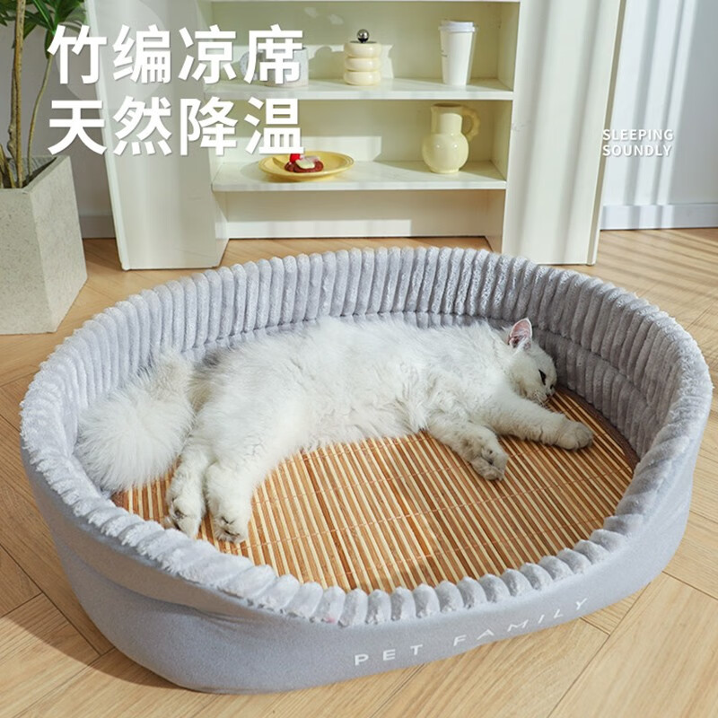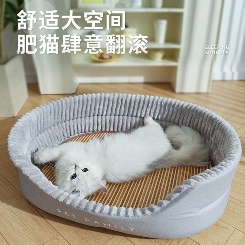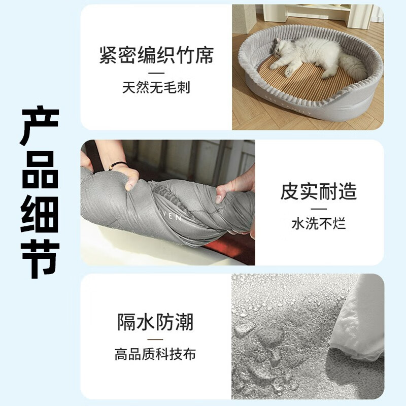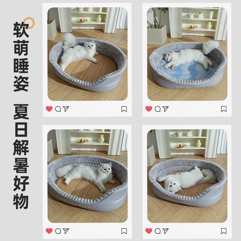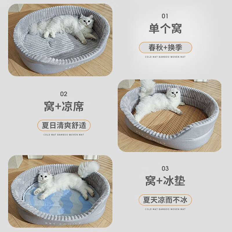 华元宠具(hoopet)猫窝四季通用夏天凉席可拆洗狗窝猫咪夏季冰垫冰窝猫床睡垫宠物床 银灰色全可水洗猫窝【新款】 L 建议40斤内(多宠家庭随意睡)