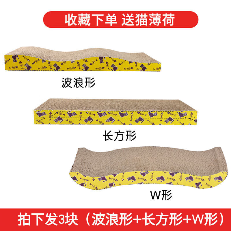 【工厂直发】猫抓板磨爪器猫爪板瓦楞纸猫抓垫猫咪玩具磨抓板猫窝玩具猫咪用品地狼 3个大号波浪 直板 W形收藏 猫薄荷
