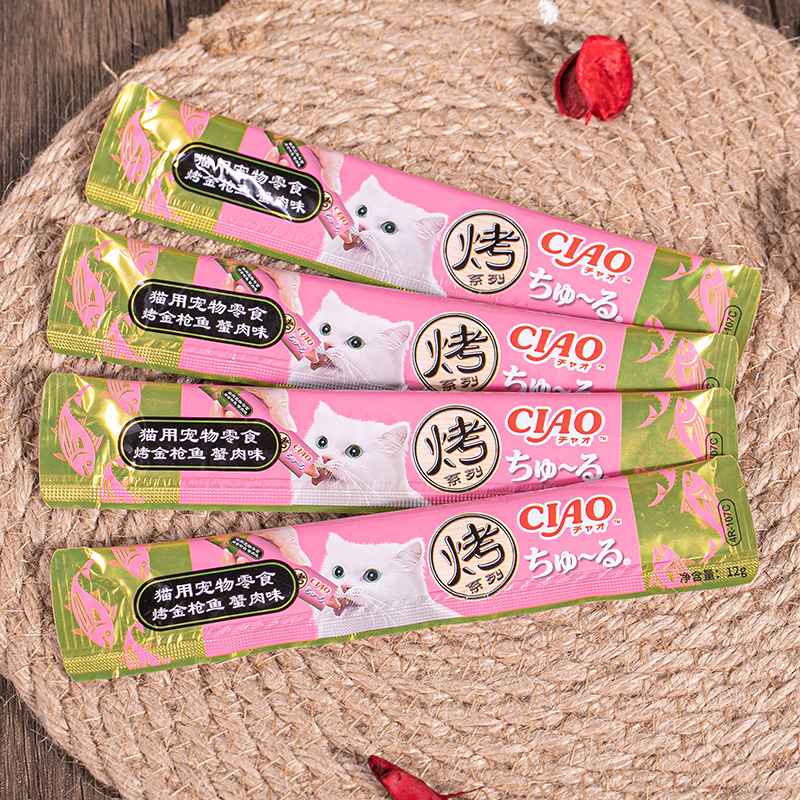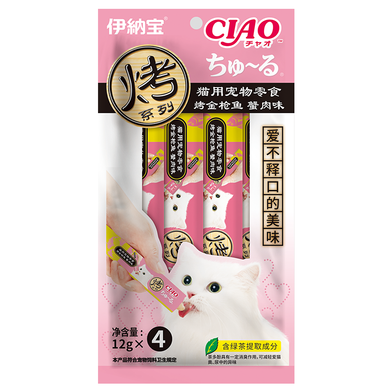 伊纳宝猫用宠物零食 烤系列猫条猫果冻 海洋鱼流质肉泥湿粮猫零食 蟹肉味整箱4R-107C