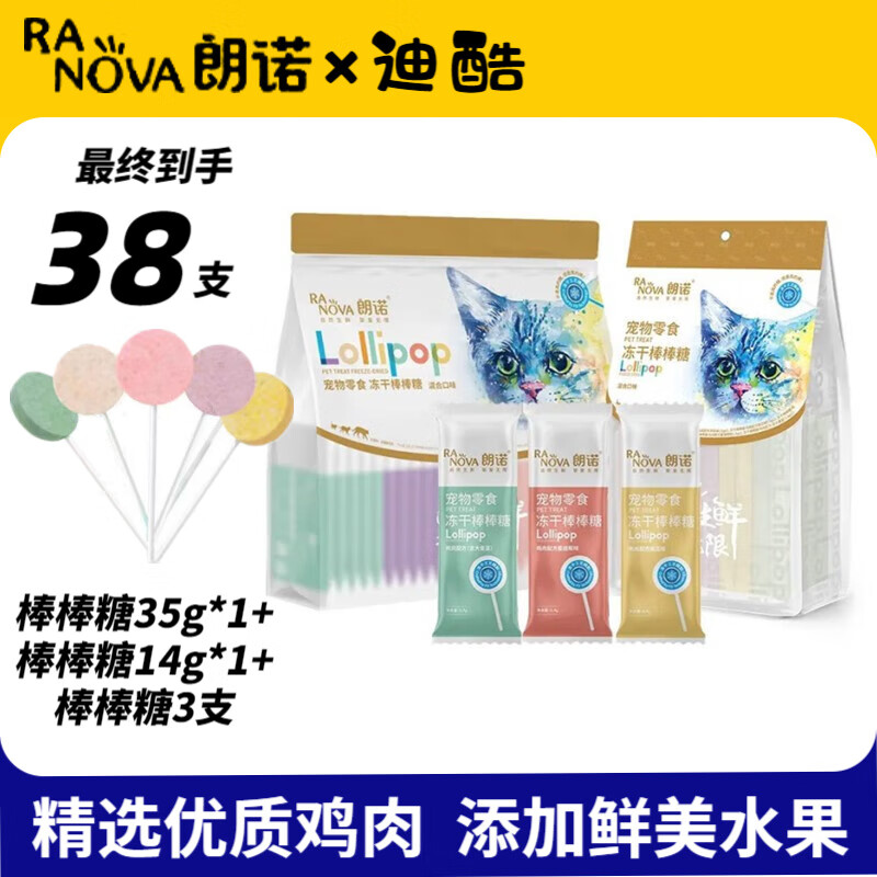 朗诺棒棒糖冻干猫零食生骨肉鸡肉猫咪零食冻干 混合口味组合装【38支】