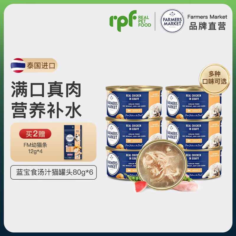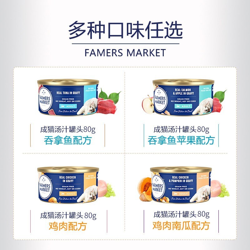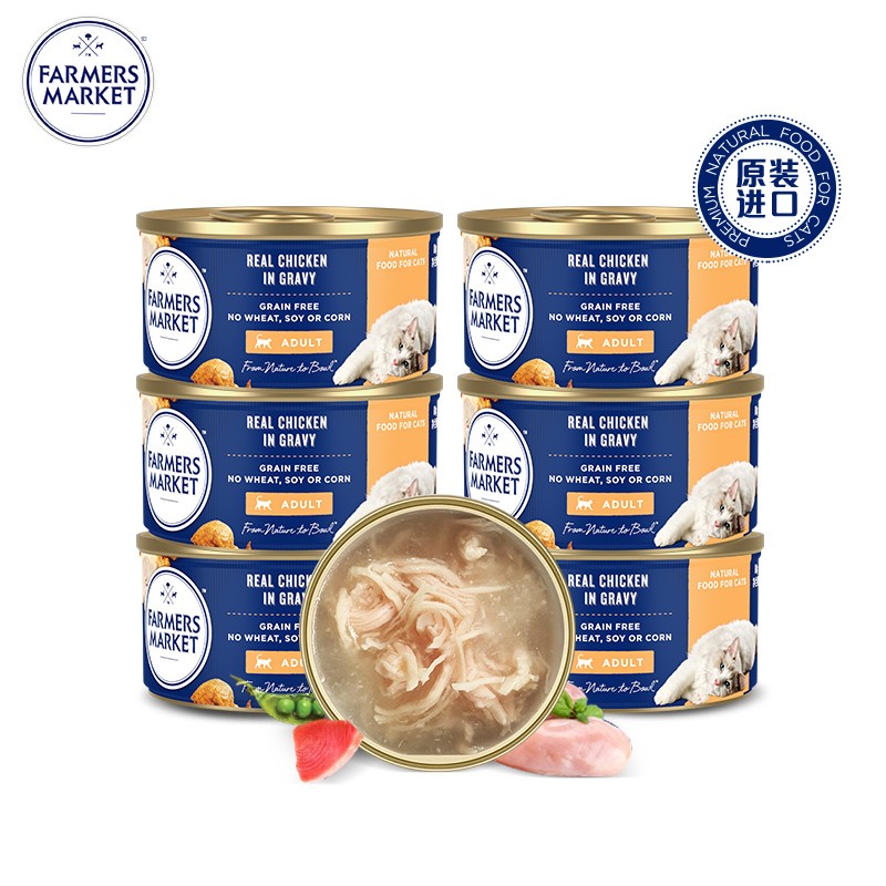 Farmers Market蓝宝食 成猫罐头 主食湿粮 宠物零食 汤煮罐头 澳洲品牌 鸡肉配方 80g*6
