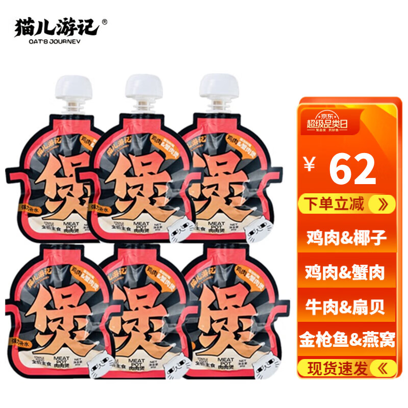 布兰德猫儿游记系列肉肉煲成猫幼猫咪主食餐包湿粮咕噜酱营养增肥发腮软罐头 【鸡肉 蟹肉】鸡蟹肉煲80g*6袋