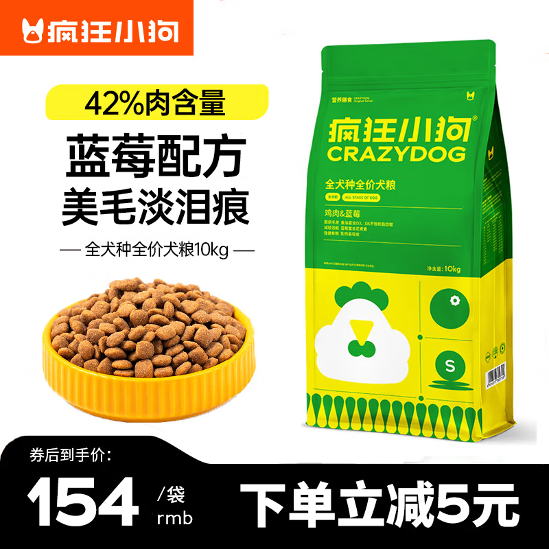 疯狂小狗狗粮20斤泰迪柯基金毛边牧全犬种通用成犬幼犬全价粮鸡肉蓝莓10kg 【鸡肉蓝莓】全犬种通用粮10kg