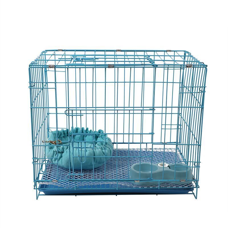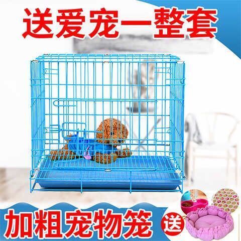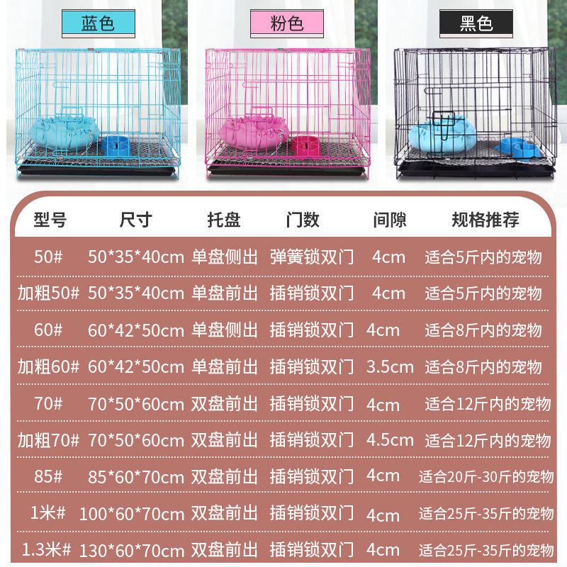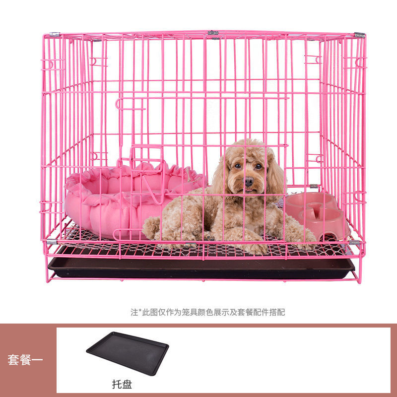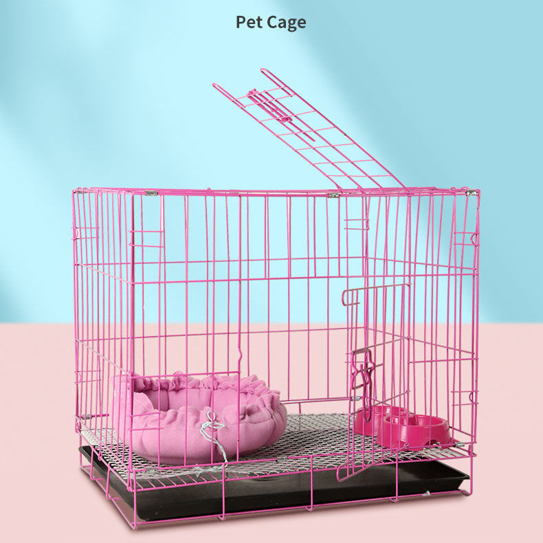 路小雅狗笼子小型犬泰迪狗笼室内带厕所中型犬折叠宠物笼猫笼兔笼鸡笼 粉色加粗60*42*50(15斤内) 托盘 双食碗 脚垫 狗窝 玩具 狗