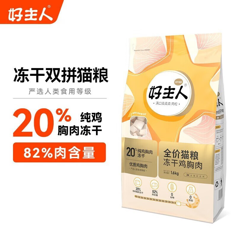 好主人(CARE)金装猫粮2.0 全价成猫高含肉量鸡肉配方高蛋白无谷幼猫粮 【20%冻干82%含肉量】双拼3.2斤
