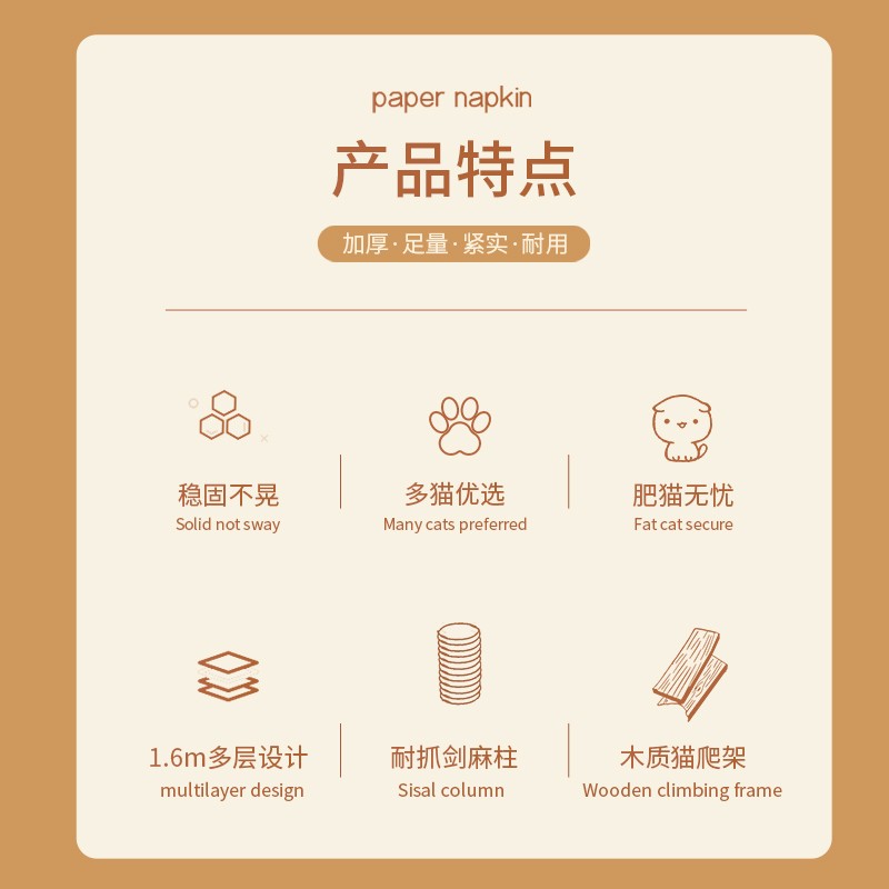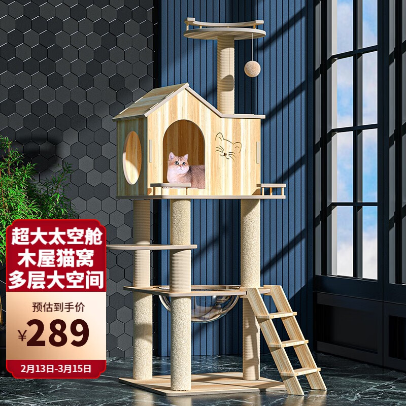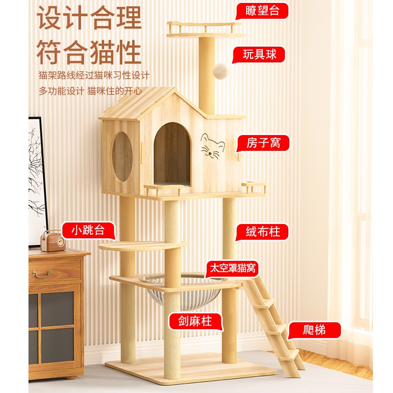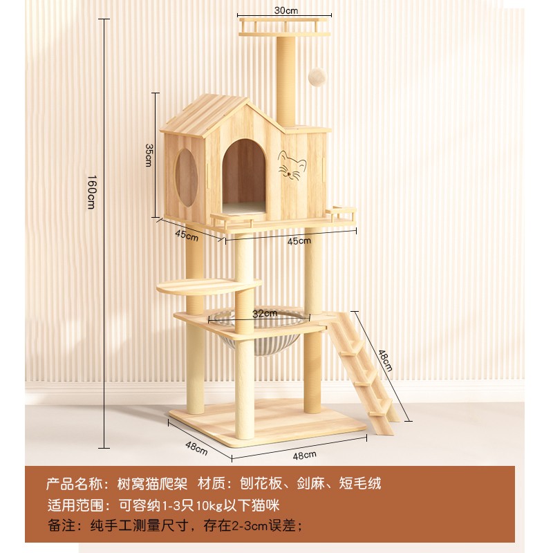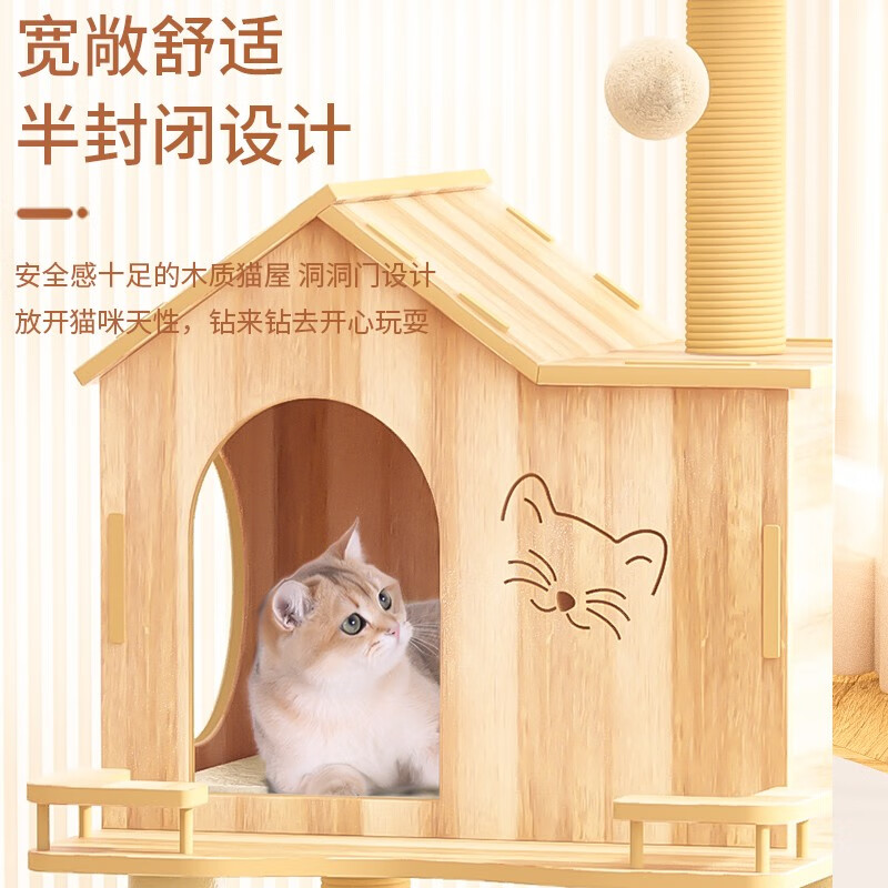 喵先生 猫爬架 大号木质猫架子猫树猫架剑麻猫抓柱猫抓板耐磨猫跳台猫窝猫玩具猫咪用品 1.6米豪华木屋猫爬架