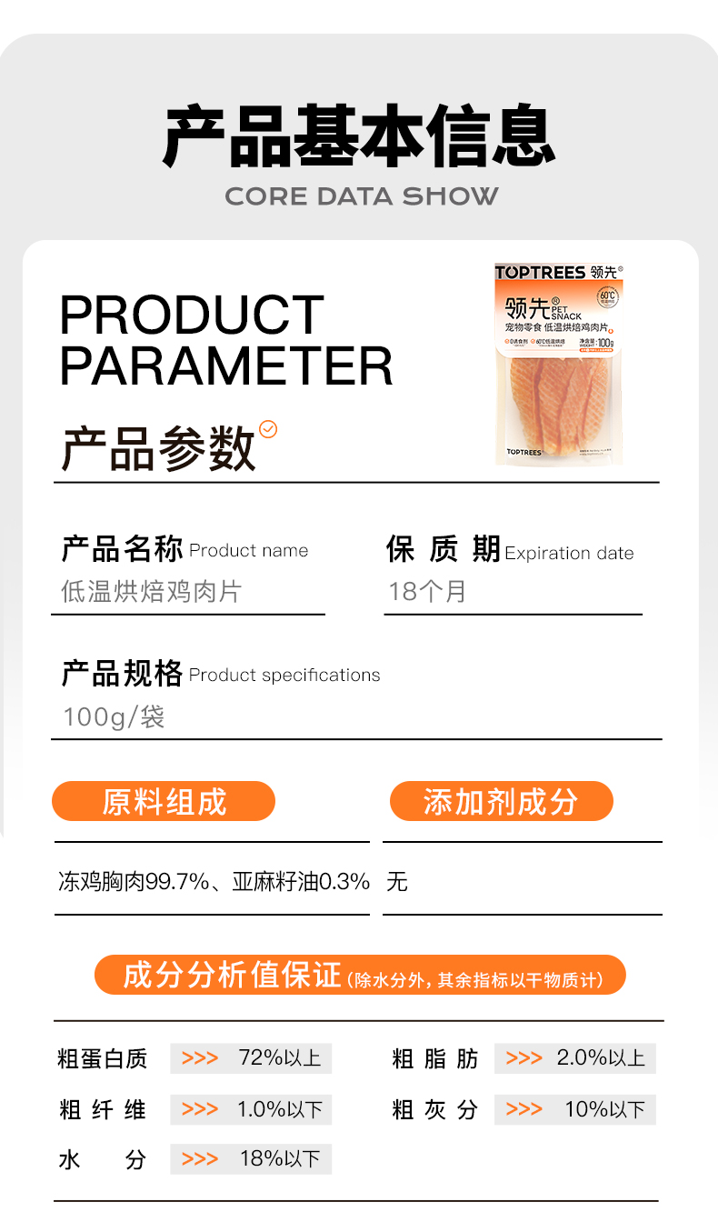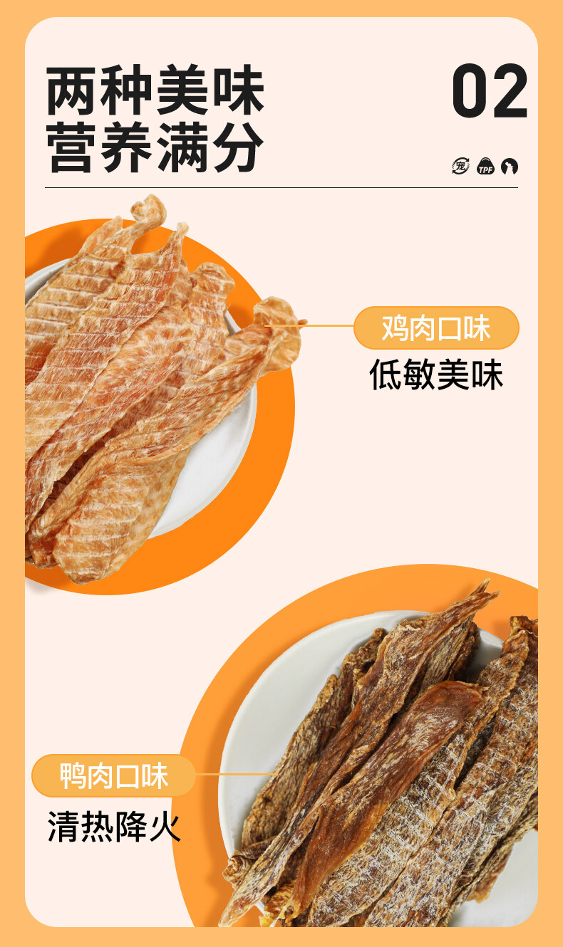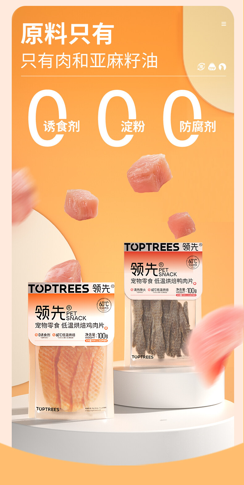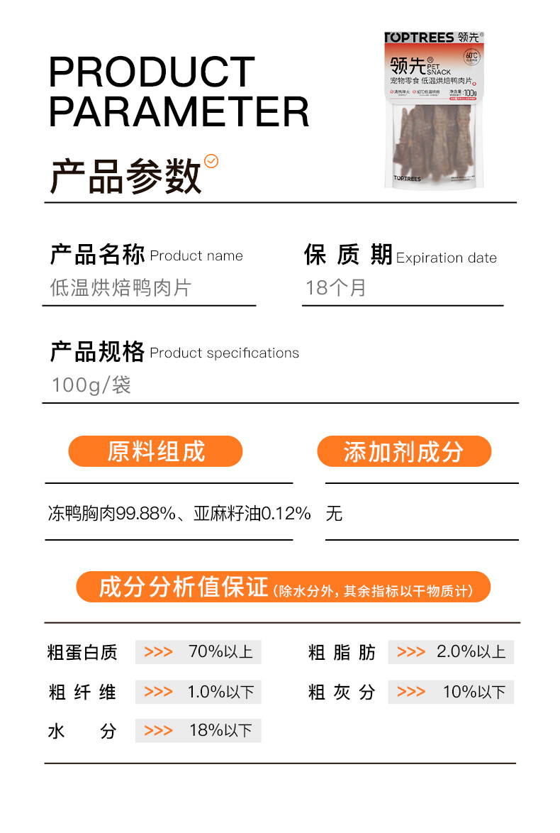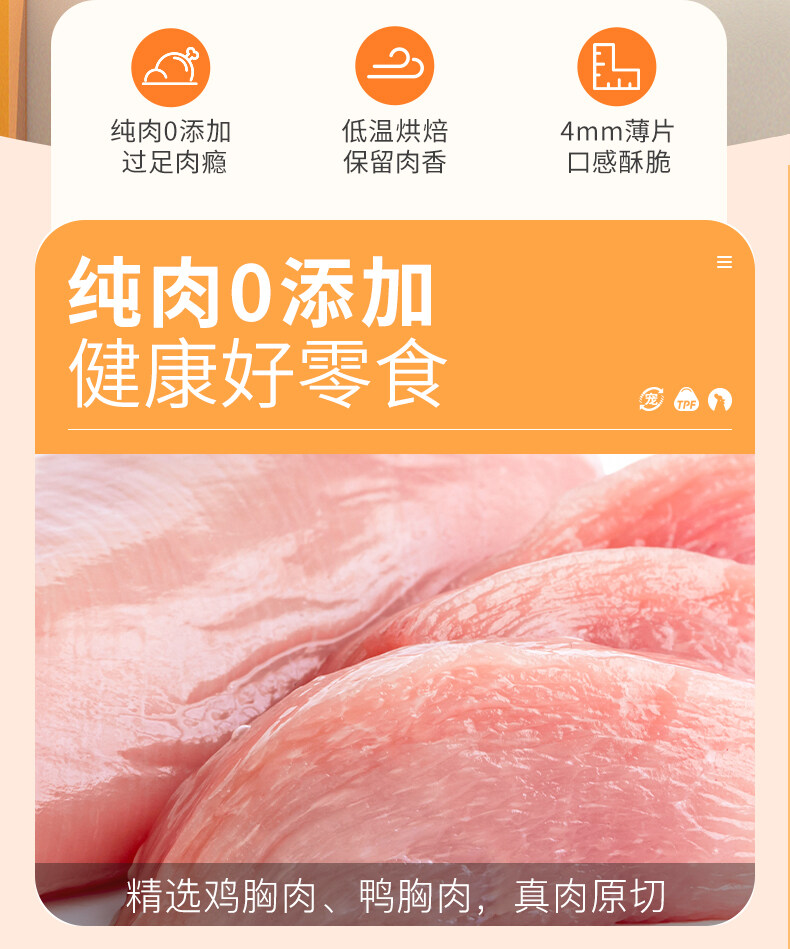 领先 宠物零食低温烘焙鸡肉/鸭肉片100g