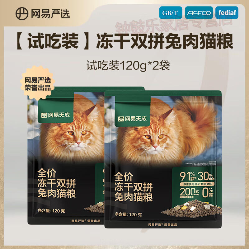 网易严选【U先】猫粮 成猫全价冻干双拼兔肉猫粮120g*2袋 冻干双拼兔肉猫粮【靓毛健肌,8 240g120g*2袋装