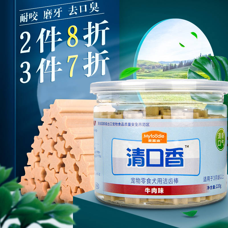 比亿奇麦富迪清口香 狗狗磨牙棒咬胶洁齿骨幼犬成犬泰迪比熊金毛宠物互 牛肉味