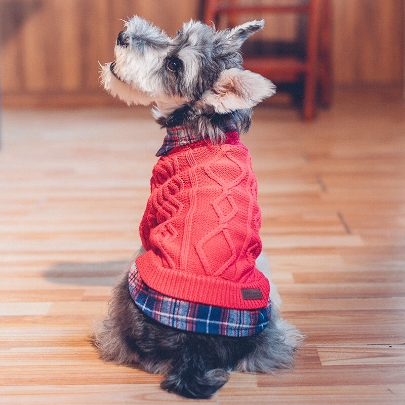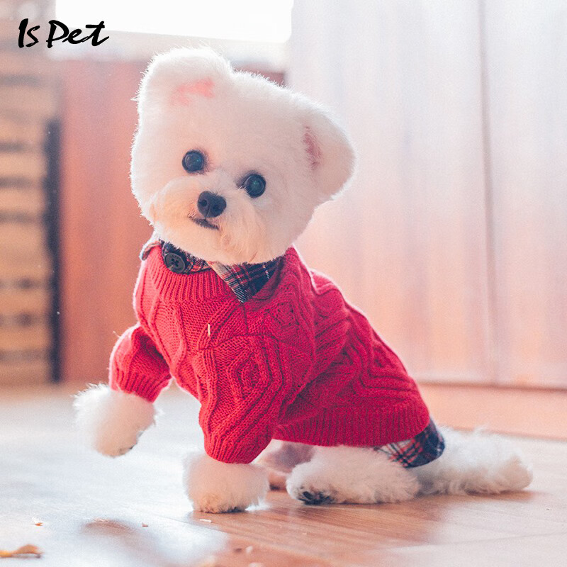 ISPET宠物狗狗衣服秋冬装泰迪比熊雪纳瑞柴犬小型犬假两件毛衣 宝蓝色 M码5-7斤