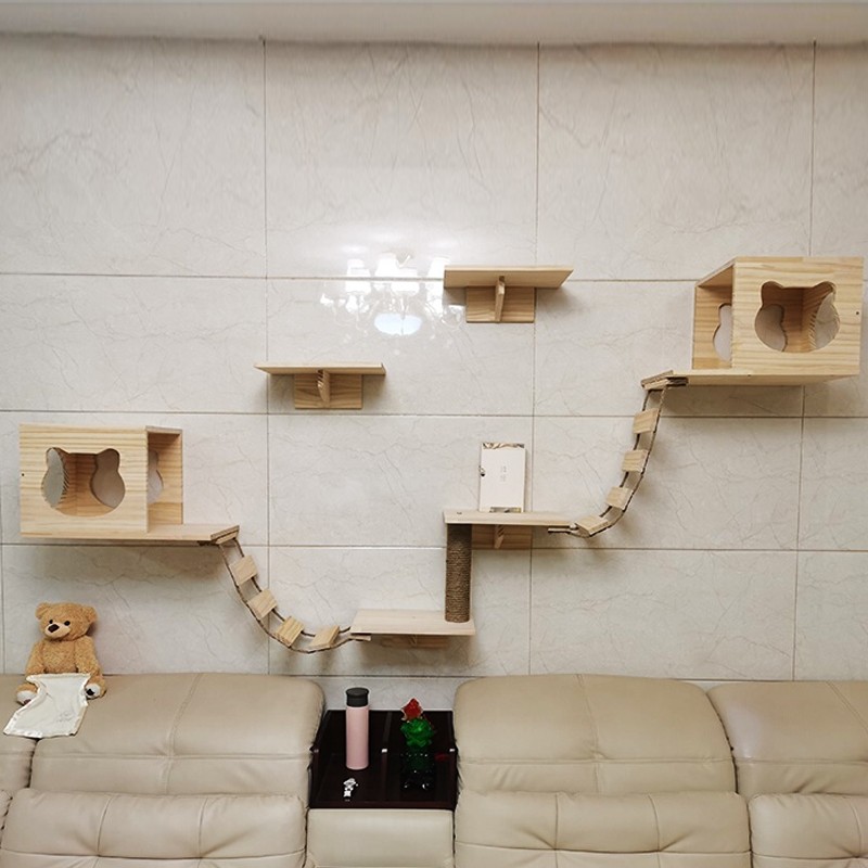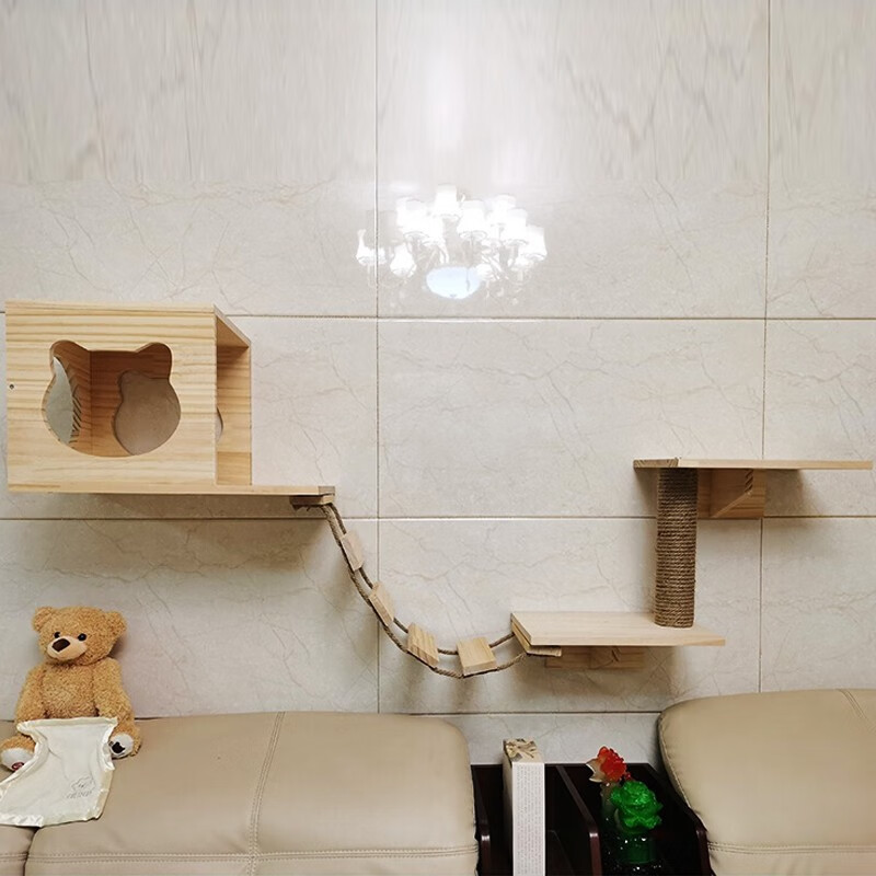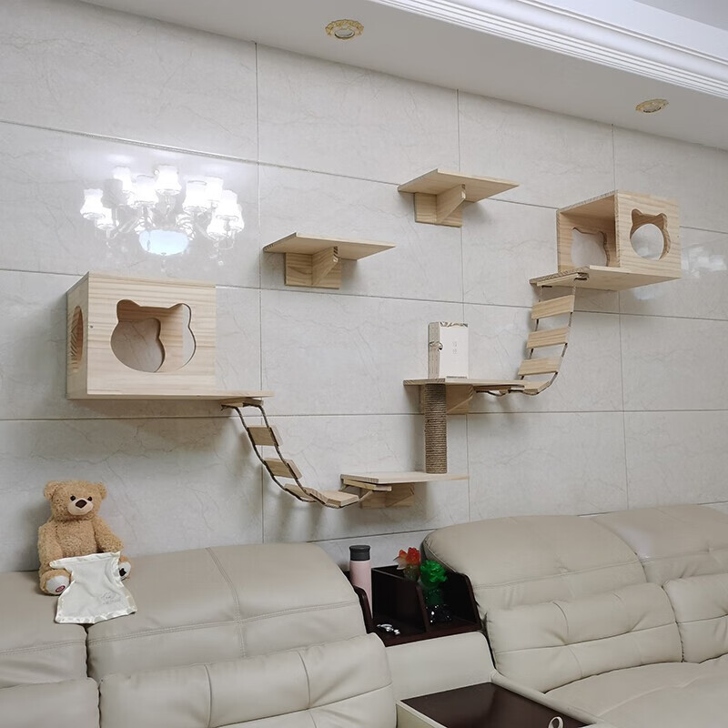 猫爬架猫墙实木猫抓柱壁挂式猫树太空舱跳台软梯吊桥猫窝剑麻猫咪玩具磨爪 梯子