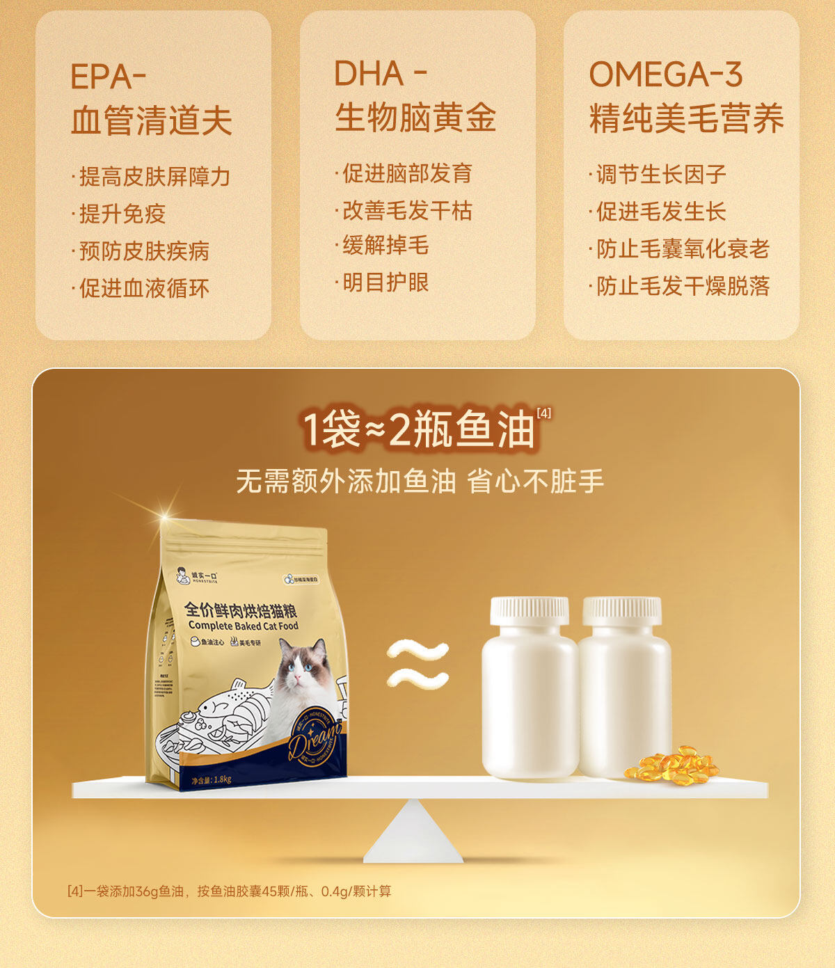 美国绝魅狗狗鱼油宠物鱼油三文鱼油卵磷脂美毛防掉毛黑鼻头浓缩鱼油亮毛护肤宠物营养保健用品 【猫猫专用】60粒