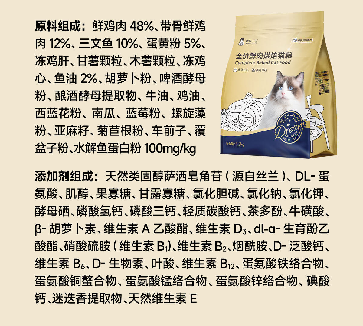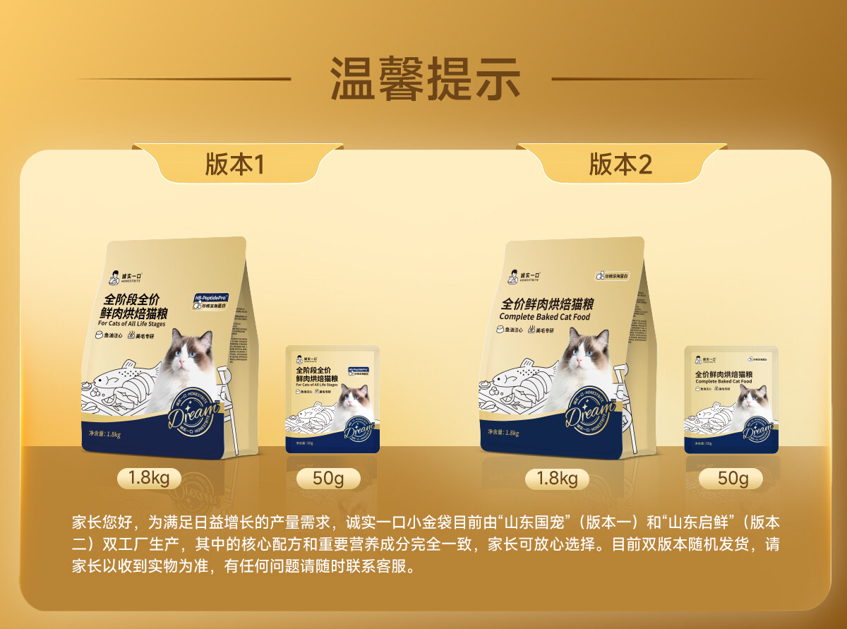 诚实一口 Dream小金袋全阶段全价鲜肉烘焙猫粮50g/1.8kg