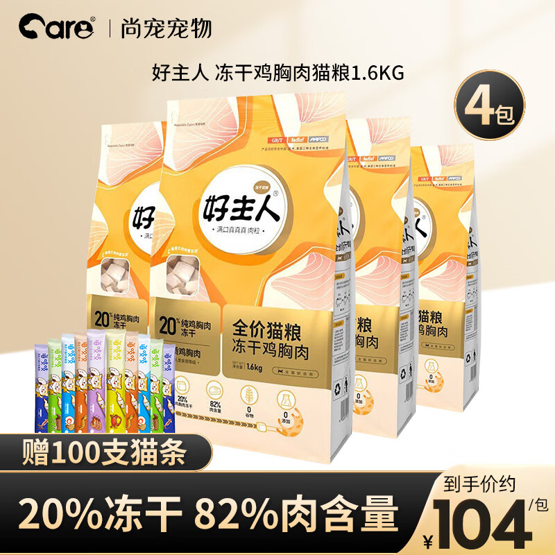 好主人(CARE)猫粮2.5kg 成猫猫粮幼猫猫粮金装全价冻干猫粮无谷粮猫干粮猫主粮 冻干双拼猫粮 3.2斤*4包