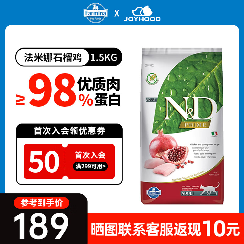 法米娜猫粮天然无谷配方石榴鸡苹果猪鲱鱼橙增肥发腮进口粮 石榴鸡成猫1.5kg【25年2月】