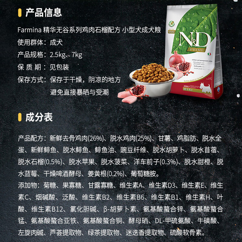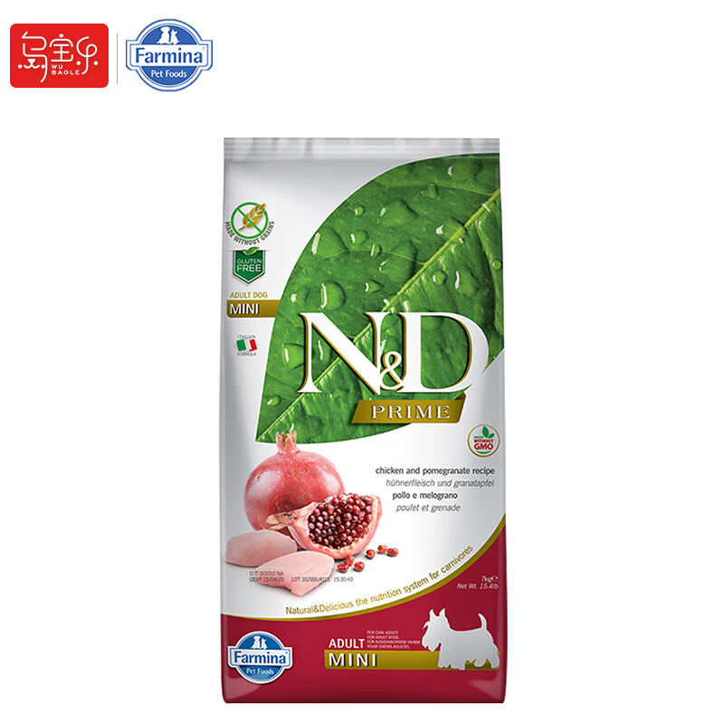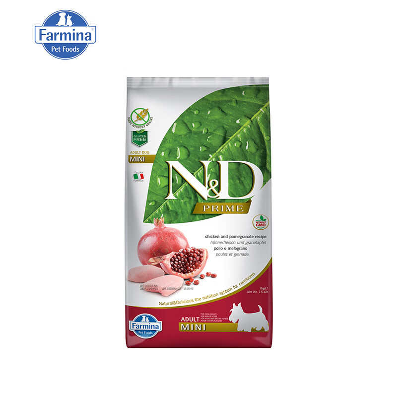 法米娜(Farmina)进口狗粮 无谷粮成犬粮哈士奇金毛泰迪雪纳瑞 小型犬|鸡肉石榴7kg