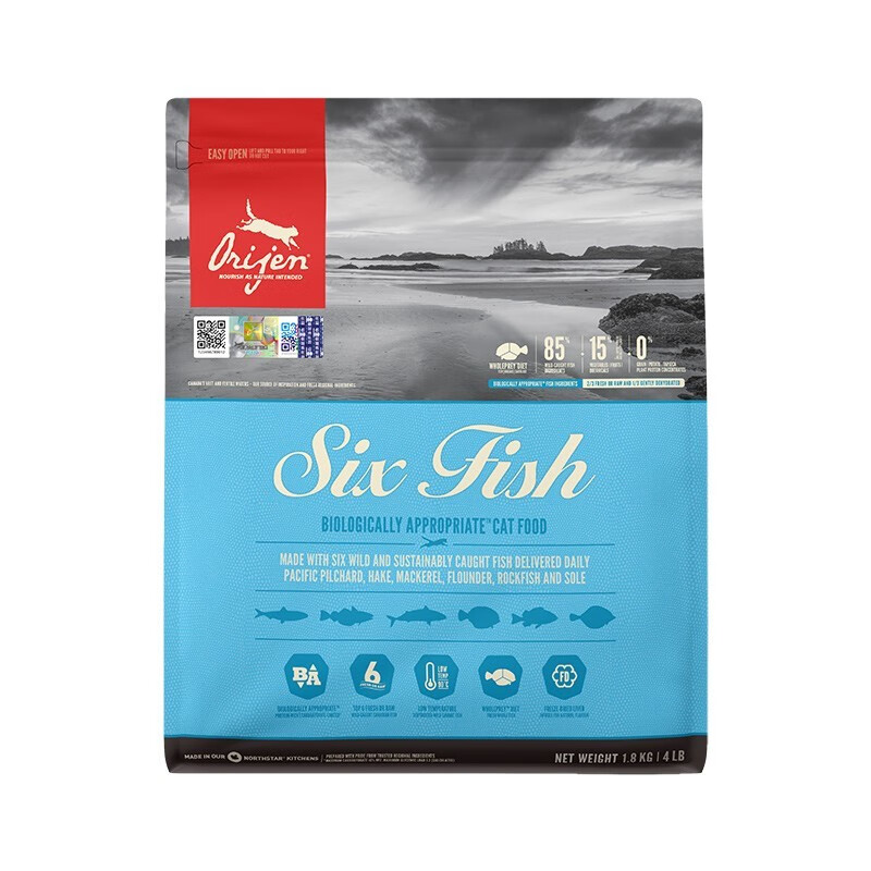 Orijen渴望六种鱼猫粮成猫幼猫全阶段原肉新老包装随机发货 六种鱼1.8公斤
