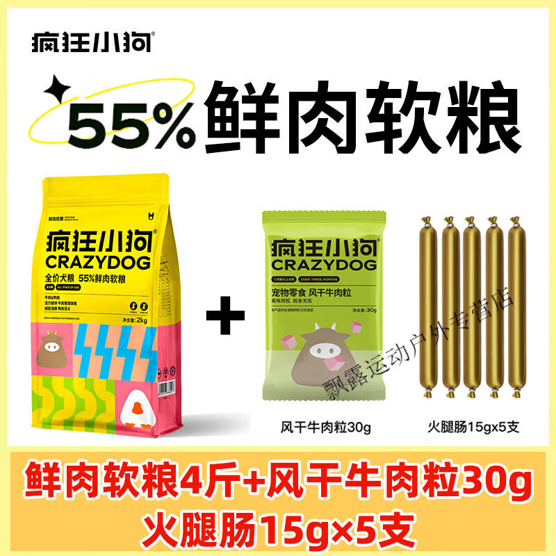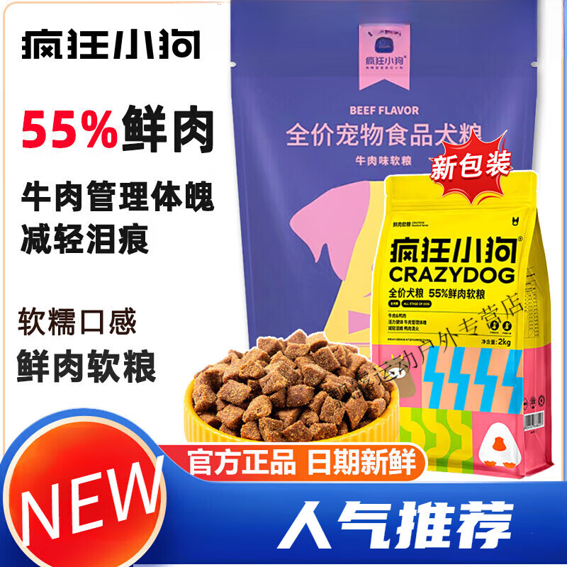 疯狂小狗狗粮鲜肉软粮牛肉全价犬粮老年犬泰迪小型犬幼犬比熊湿粮 【55%鲜肉含量】鲜肉软粮4斤 牛 0lb拍下立减