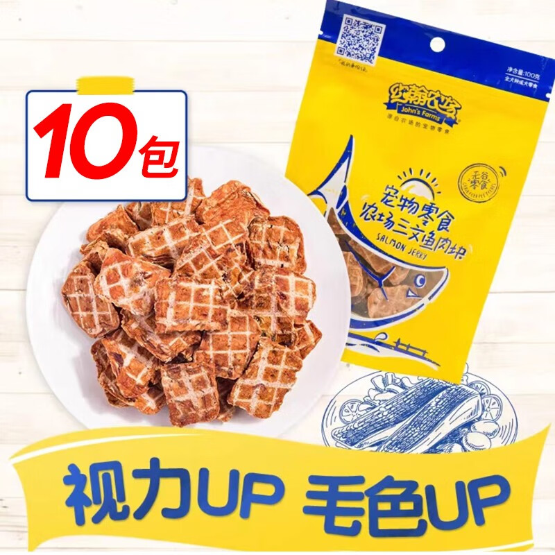 约翰农场小黄箱狗零食吃货箱鸡肉干成幼犬泰迪宠物训练奖励宠物零食10包 三文鱼肉块100g*10包