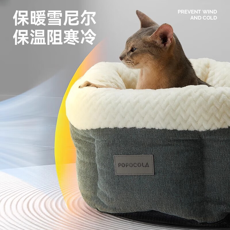 POPOCOLA猫窝冬季保暖电热毯加热发热冬天智能恒温幼猫咪屋全半封闭式猫窝 法兰绒深睡猫窝 全年龄猫咪通用