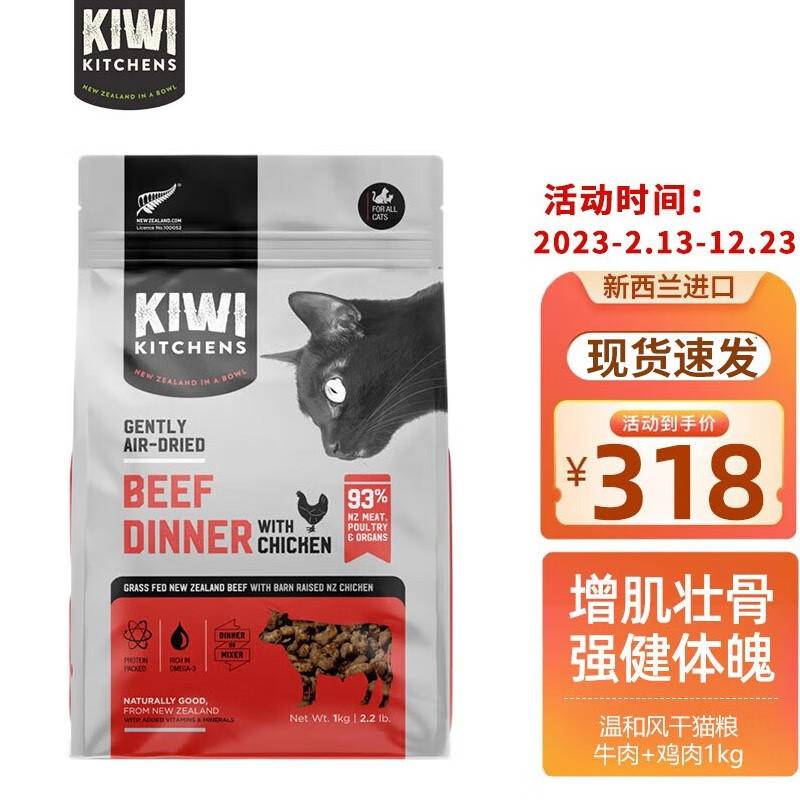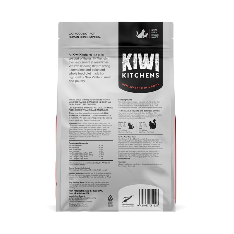 KIWI KITCHENS猫粮 新西兰原装进口温和风干kiwi猫主粮多口味成猫幼猫通用 牛肉