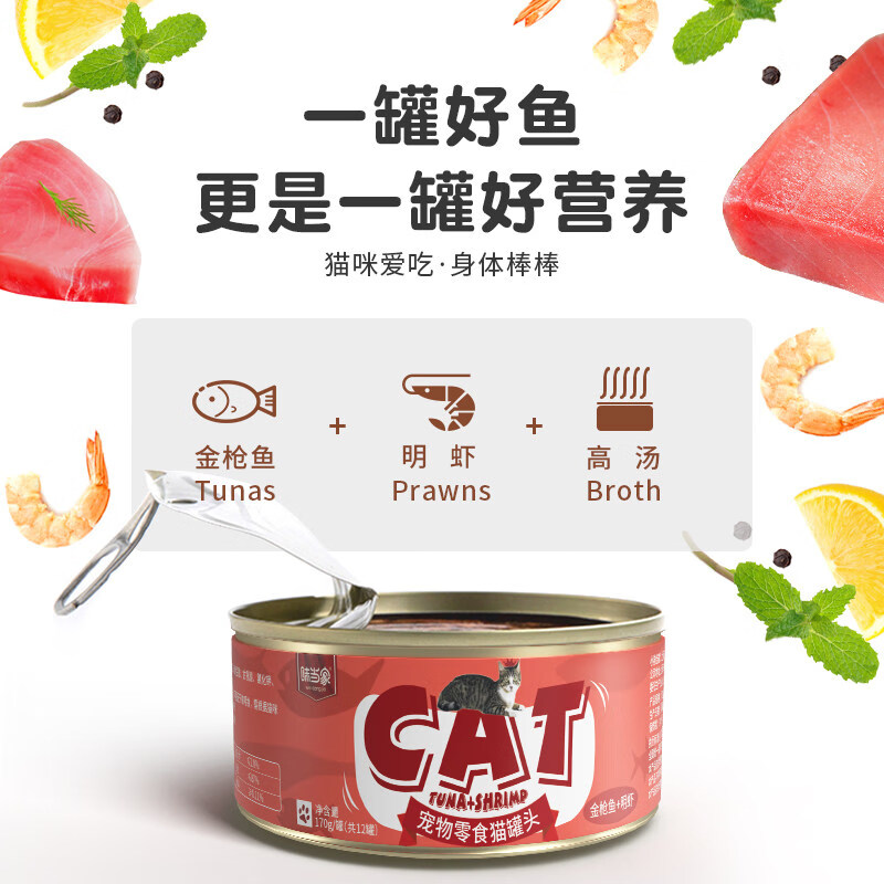 味当家红肉猫罐头低盐补水猫主食猫零食湿粮鱼虾鲜肉高汤罐170g*12成幼猫宠物零食 170g*1单罐