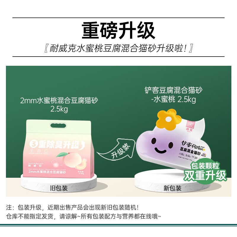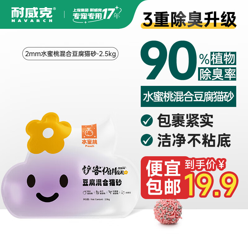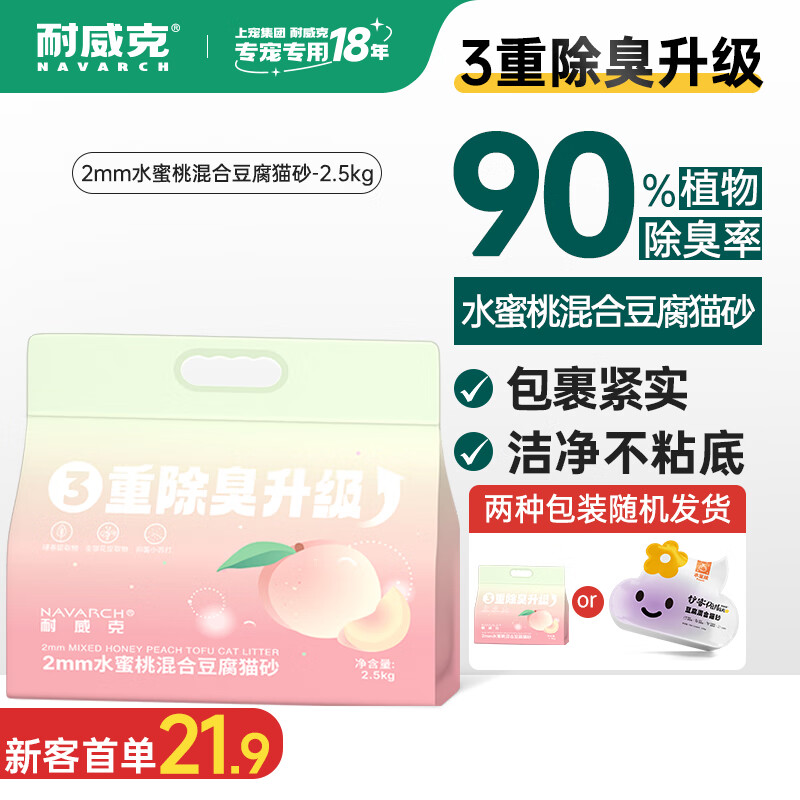 耐威克 水蜜桃豆腐猫砂成猫幼猫混合猫沙 去味除臭结团 可冲厕所 2mm混合豆腐砂2.5kg丨首单21.9