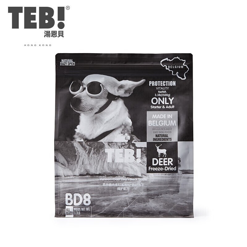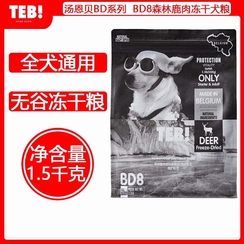 汤恩贝 (TEB)BD系列通用型小型犬中大型犬无谷天然粮幼犬成犬全价无谷比利时配方羊牛鹅肉冻干狗粮 BD8森林鹿肉冻干1.5kg