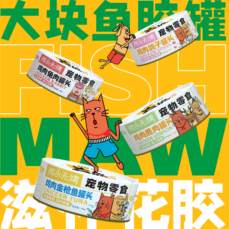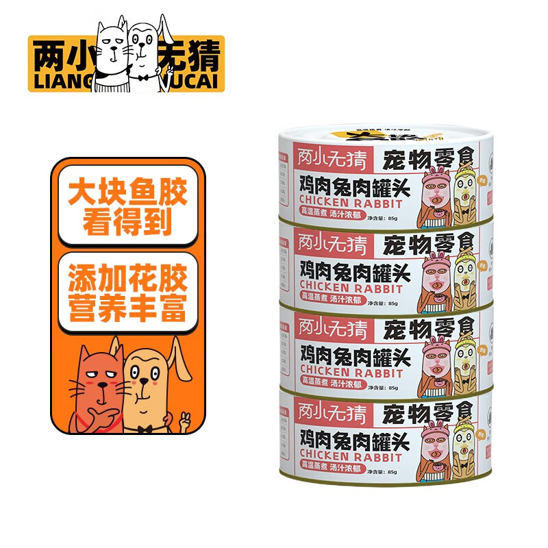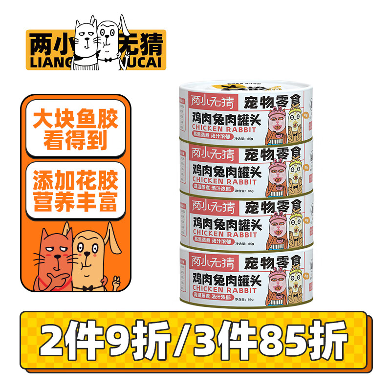 两小无猜宠物猫零食罐头成幼猫鱼胶罐头猫咪湿粮浓汤补水罐头85g*4罐混合 鸡肉兔肉85g*4罐