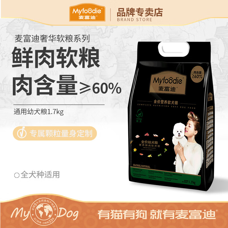 麦富迪全价软狗粮 泰迪贵宾柯基通用型鲜肉营养天然粮 幼犬粮1.7kg