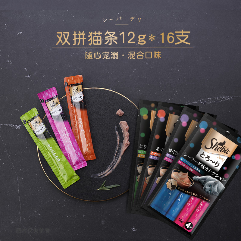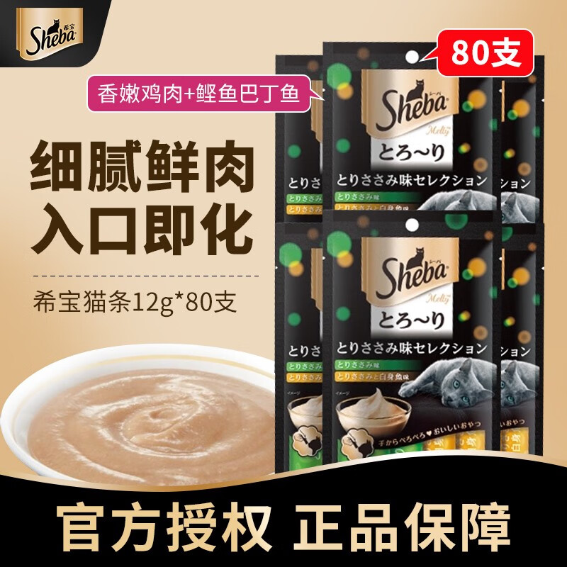 希宝(Sheba)猫条猫咪零食泰国进口湿粮猫罐头宠物成猫老年通用营养猫零食 20袋共80支-香嫩鸡肉 鲣鱼巴丁