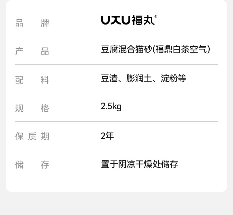 福丸猫砂 木薯豆腐膨润土混合猫砂 白茶味2.5kg/包(非真空)