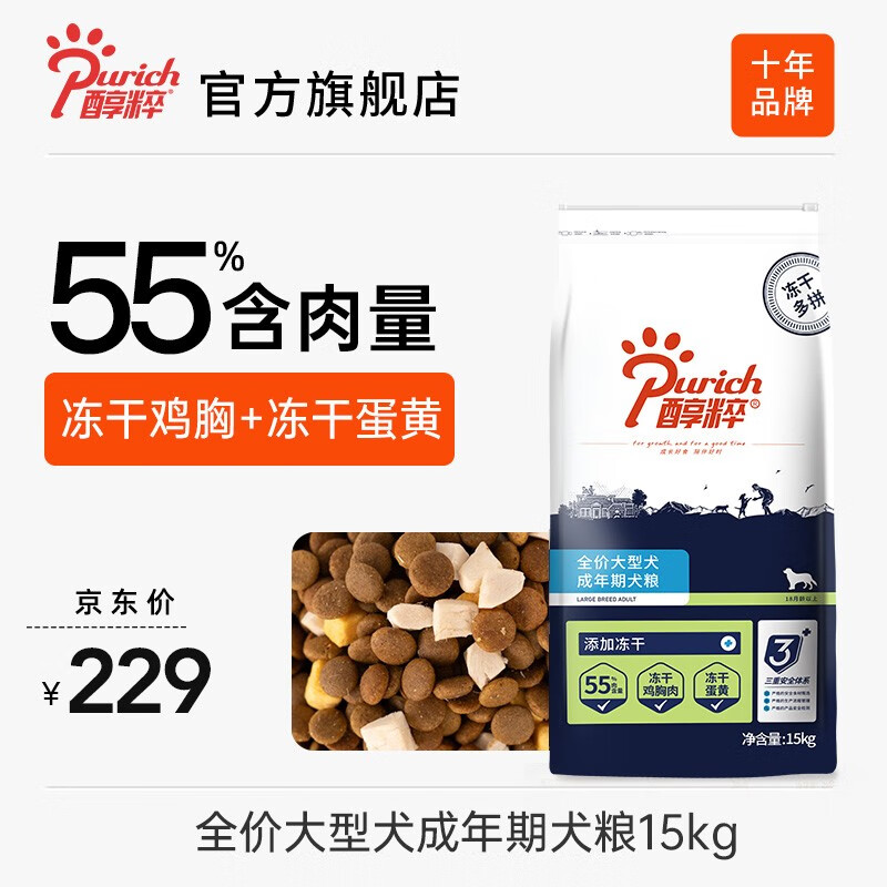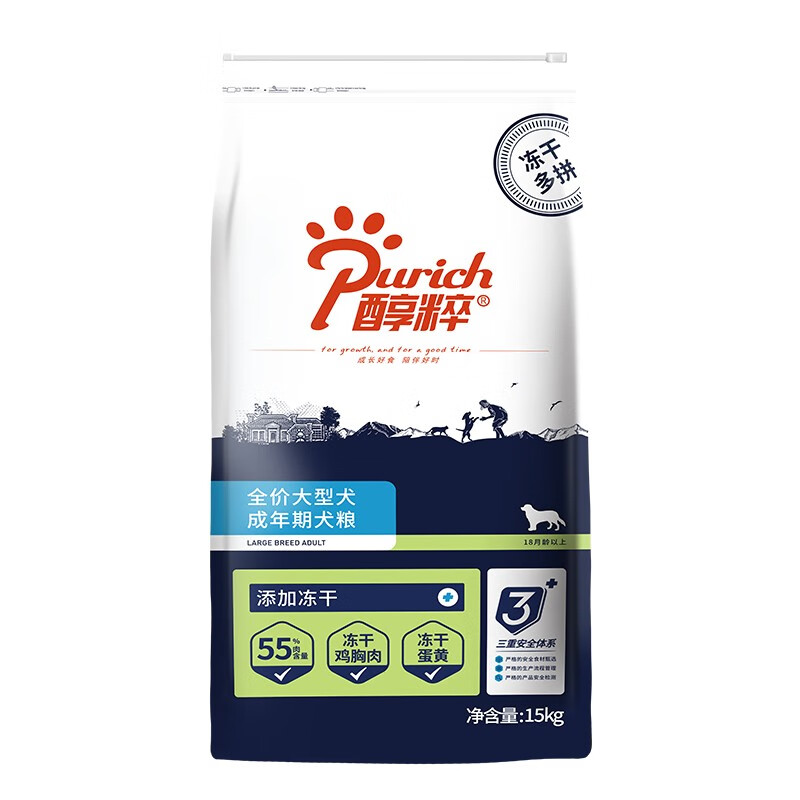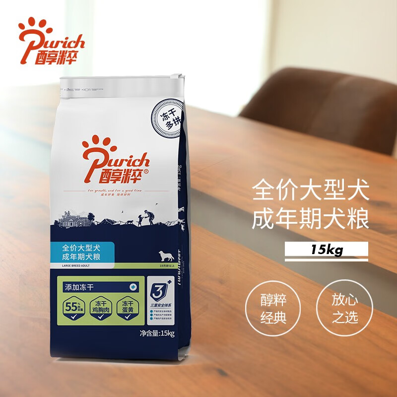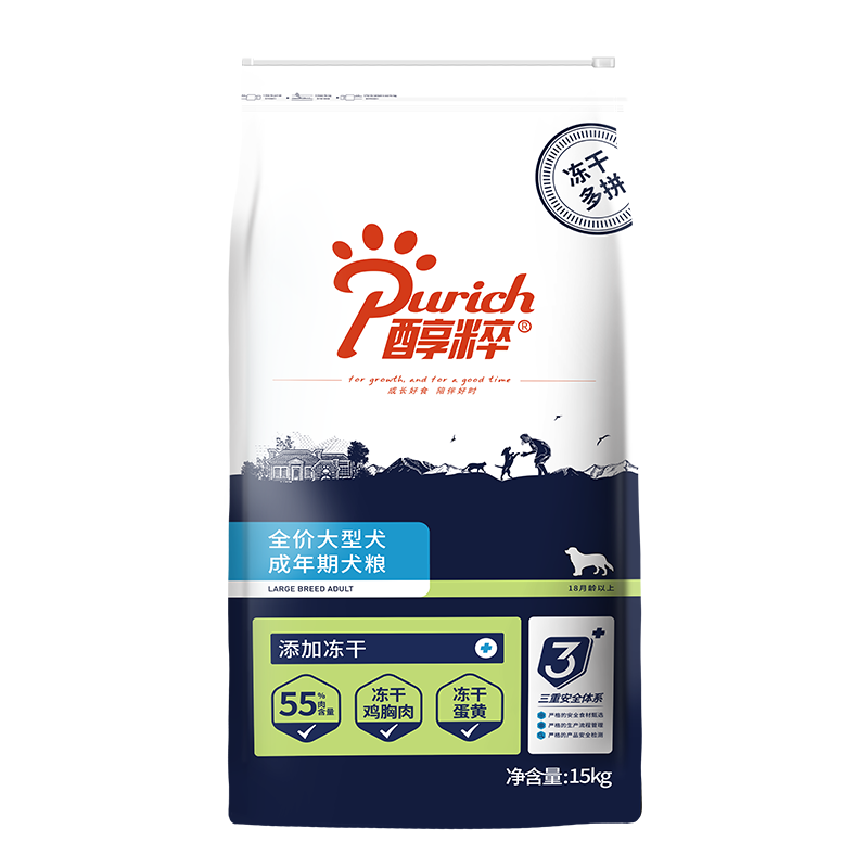 醇粹狗粮 大型犬粮拉布拉多金毛法斗萨摩耶纯粹狗粮全价狗粮全价犬粮 经典成犬15kg冻干多拼 大型犬 大型犬