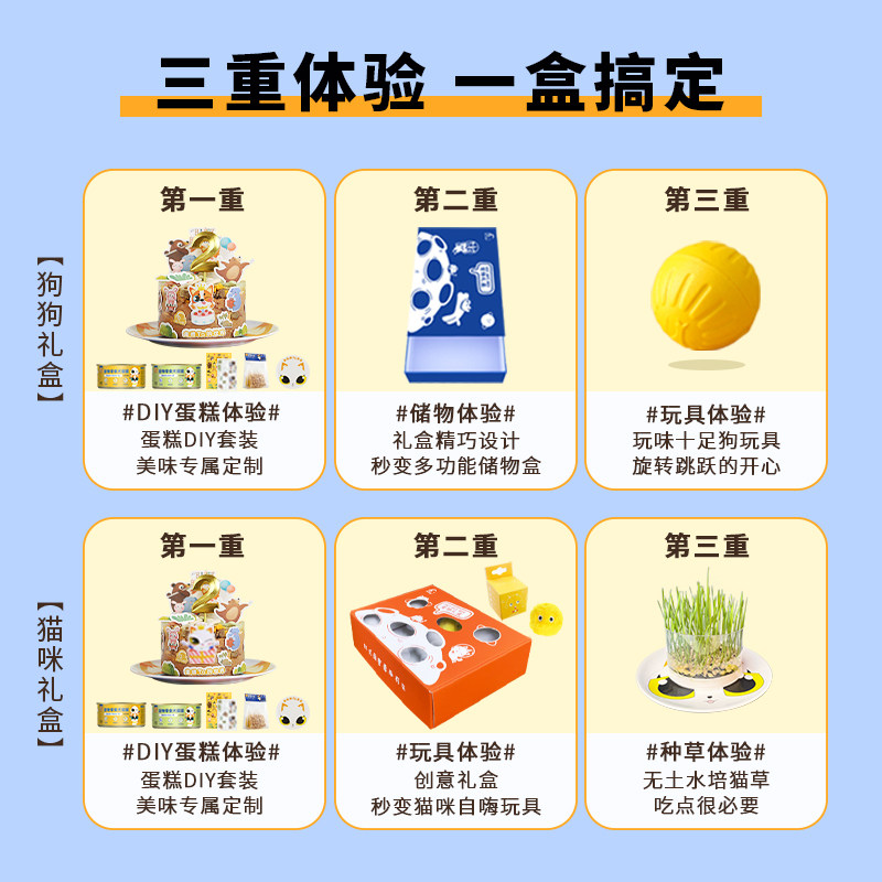 【预售】宠物生日礼盒猫咪款/狗狗款零食玩具DIY自制纯肉生日蛋糕