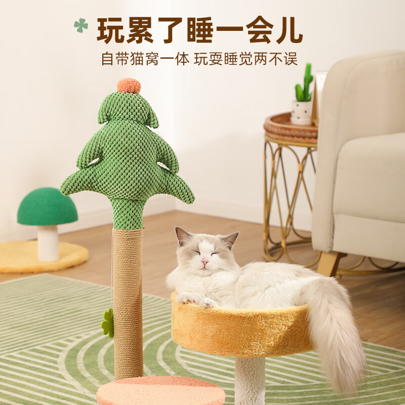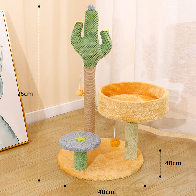 仙人掌猫爬架小型不占地猫架子猫窝猫树一体猫抓柱幼猫咪玩具用品 主图款带逗猫球【仙人掌双平