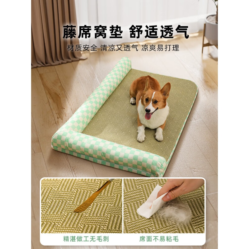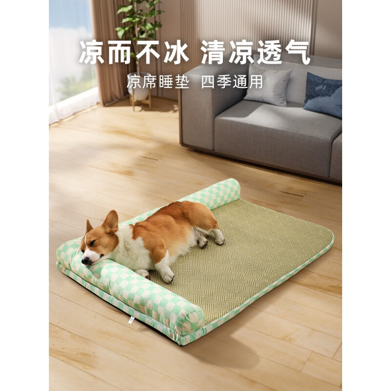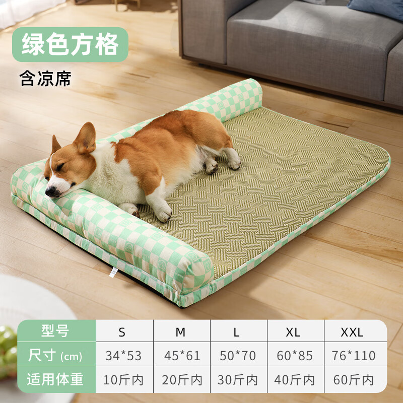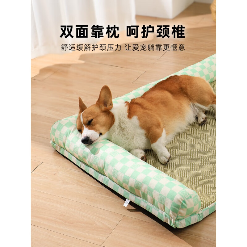 CLCEY狗狗凉席垫狗窝四季通用猫咪垫子夏天冰凉窝睡垫狗垫子睡觉用床垫 绿色方格加厚款(双边枕凉席垫) S-小型34*53cm 建议10斤内