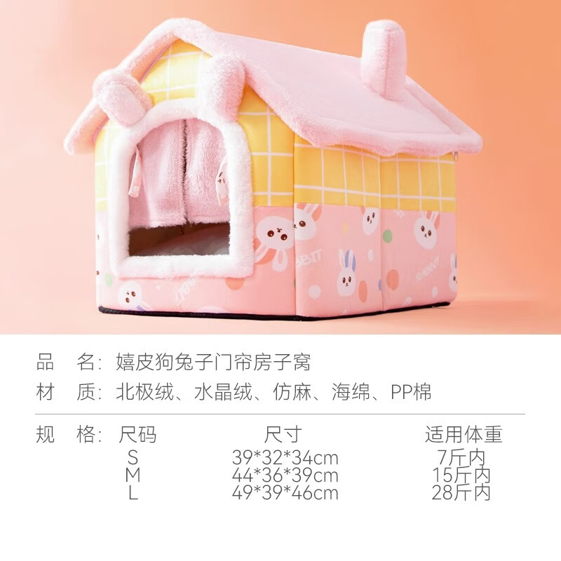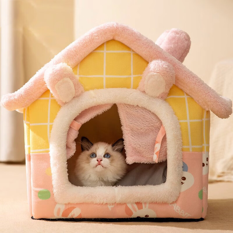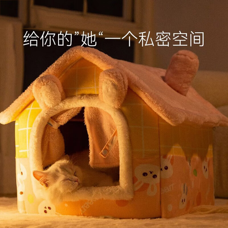 嬉皮狗(hipidog)猫窝冬天保暖猫咪房子封闭式可拆洗猫屋四季通用猫床网红宠物用品 兔子门帘窝 S-小号(适用体重7斤内)
