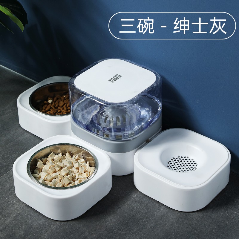 KimPets猫咪饮水机不插电流动喝水器狗狗自动喂水喂食猫防湿嘴打翻宠物碗 三碗-绅士灰 M-中型