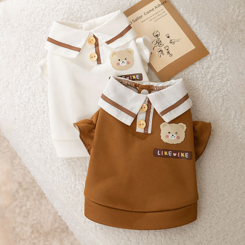 嬉皮狗(hipidog)猫咪狗狗衣服秋冬季小熊印花POLO领卫衣中小型犬两脚薄绒衣服 咖色小熊 XS(建议体重1-3斤)