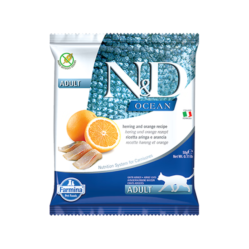 法米娜猫粮 意大利进口成猫无谷粮 增肥发腮法明娜天然意大利进口 鲱鱼甜橙试吃50g